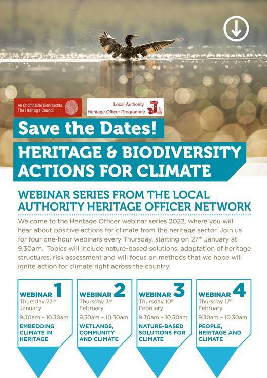 Topics will include nature-based solutions, adaptation of heritage structures, risk assessment and will focus on methods that we hope will ignite action for climate right across the country.