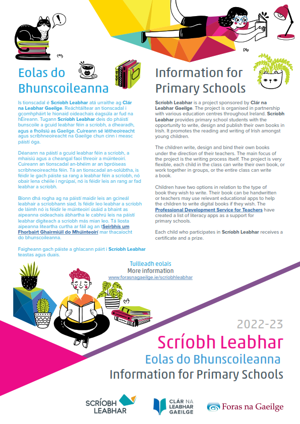 Information about Scríobh Leabhar 2022-2023 is available at the following link: https://www.forasnagaeilge.ie/scriobhleabhar/scriobh-leabhar-2022-23/?lang=en