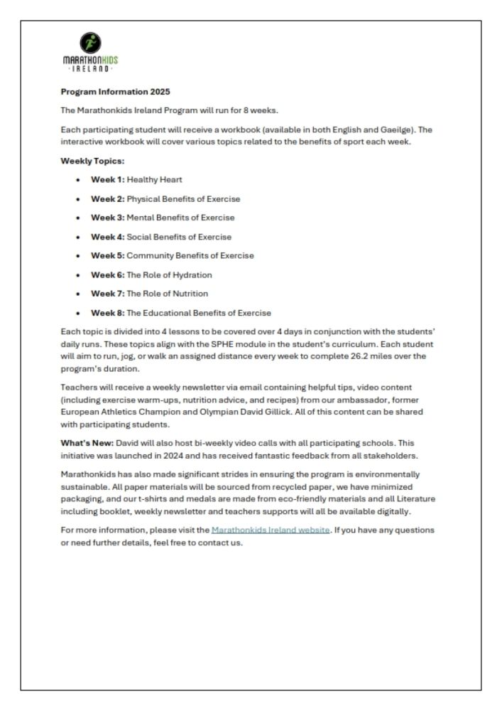After a very successful 2024 with over 15,000 students completing the Marathonkids program, Marathonkids Ireland are delighted to announce the NEW Q1 Marathon Kids program starting February 2025