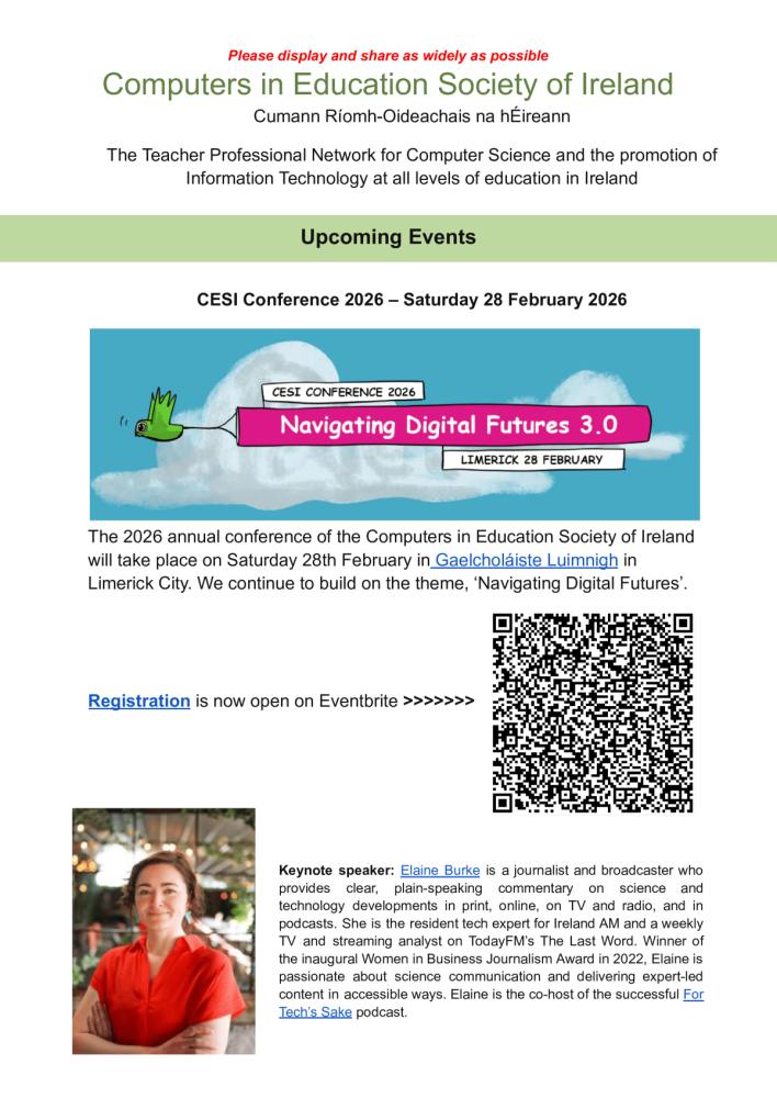 Posted in News Mayo Education Centre. 2026 Annual Conference of Computers in Education Society of Ireland Click here to register